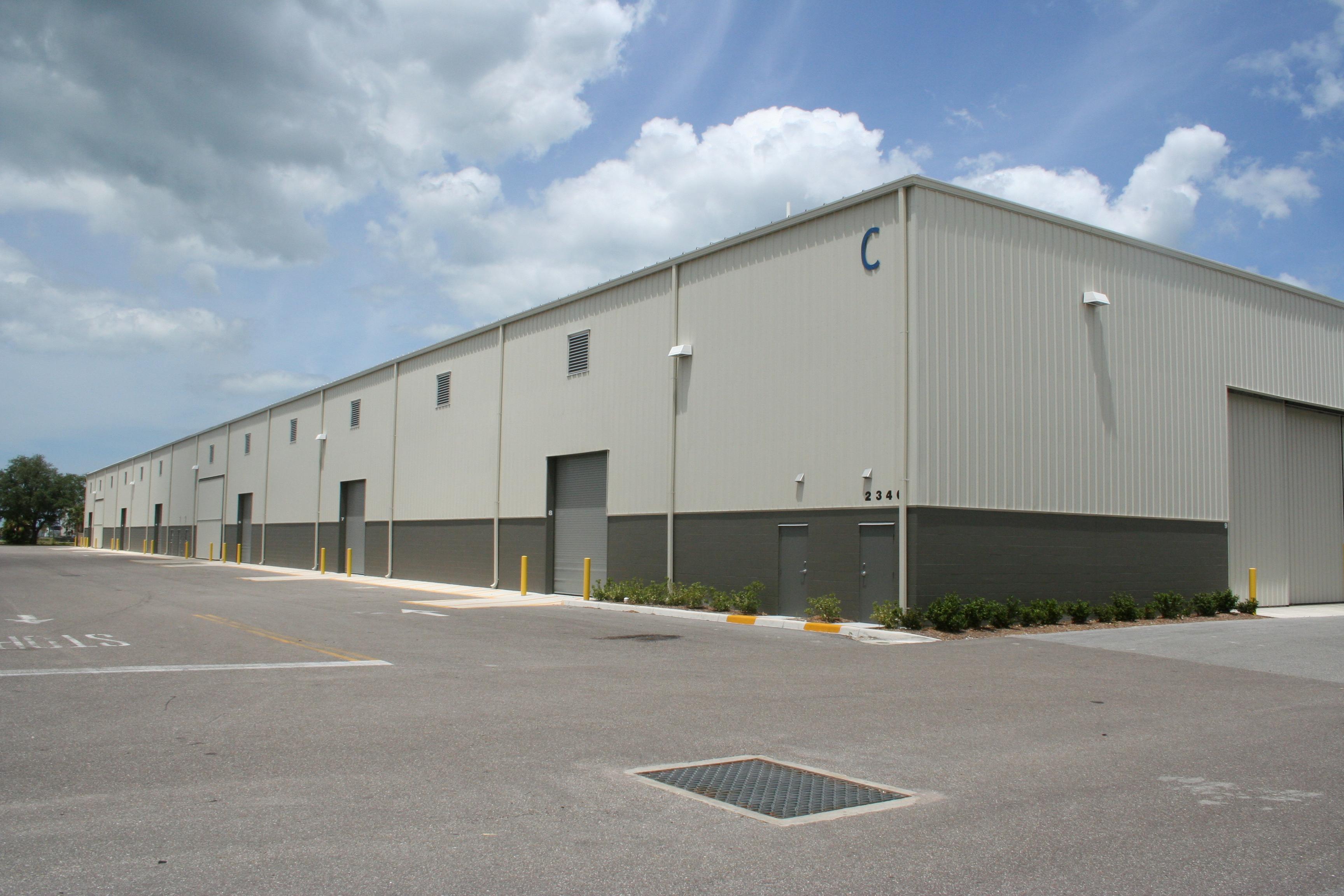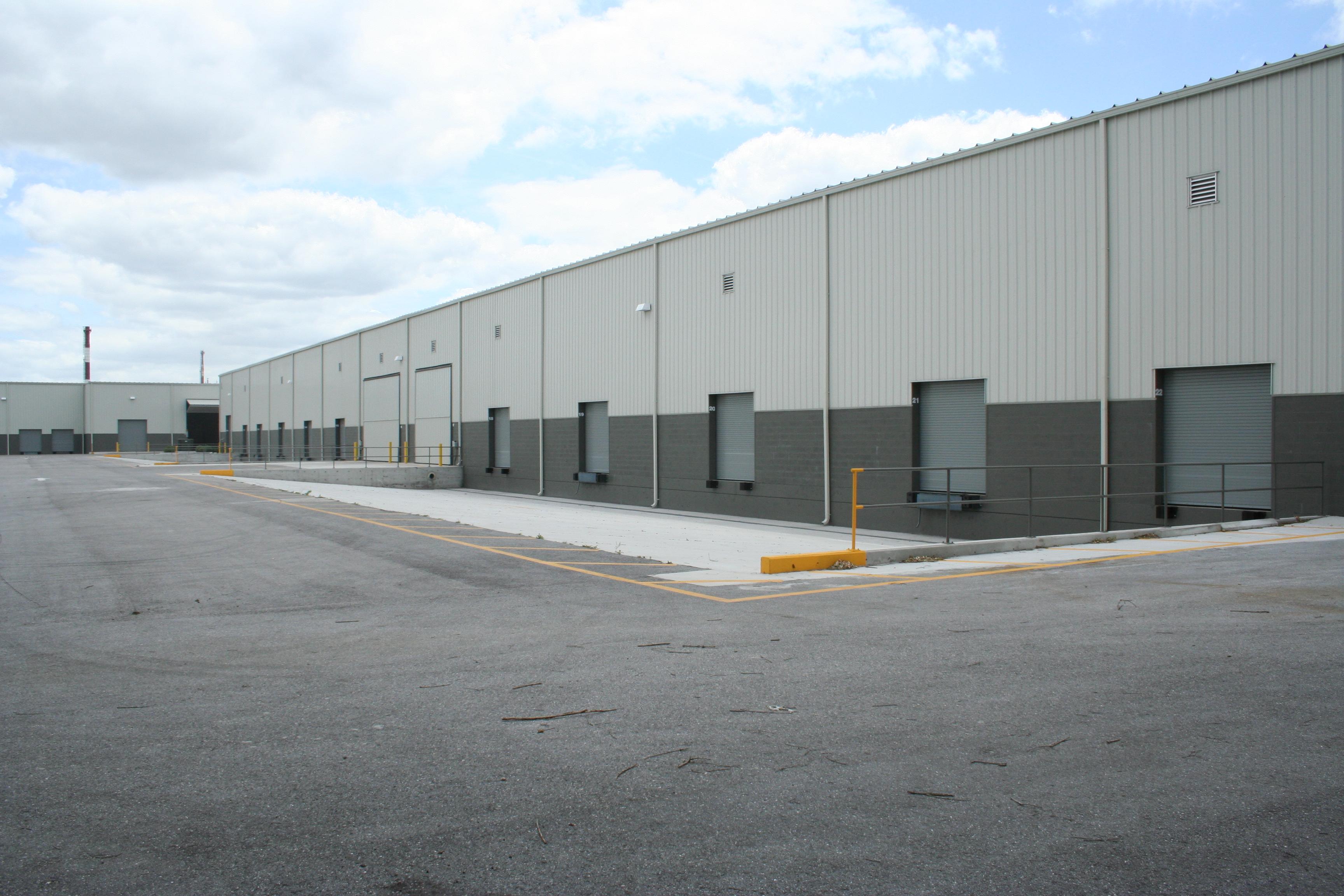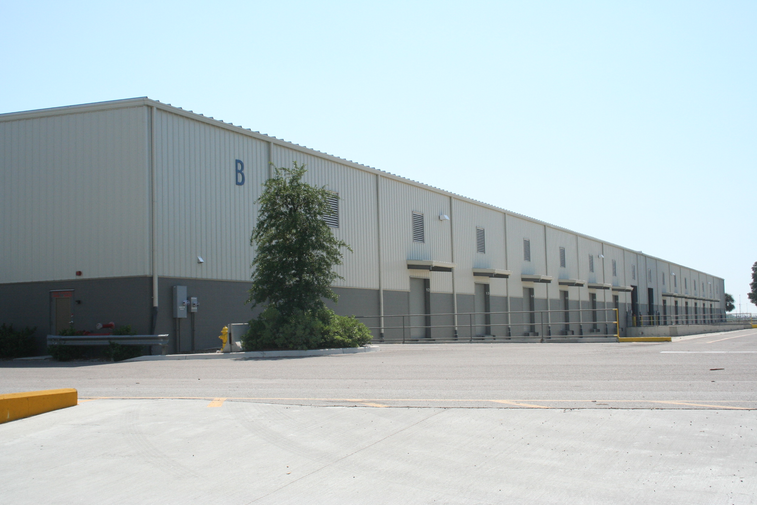 Building B contains nearly 80,000 SF of storage and transloading space featuring a 60' wide cargo door, 24' wide aircraft bi-fold door, eleven 12'x14' grade level - roll up doors, twelve dock level doors, an eave height of 26' , interior space is clear span (no support poles), 300 square foot mezzanine office area, skylights for energy savings and rail served by CSX Transportation.